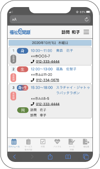 - ログインしたヘルパーのスケジュールの確認ができます。