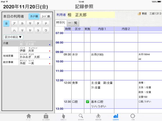 - iPadで入力した情報も、他の職員がパソコンで入力した情報も、併せて様々な角度から確認できます。